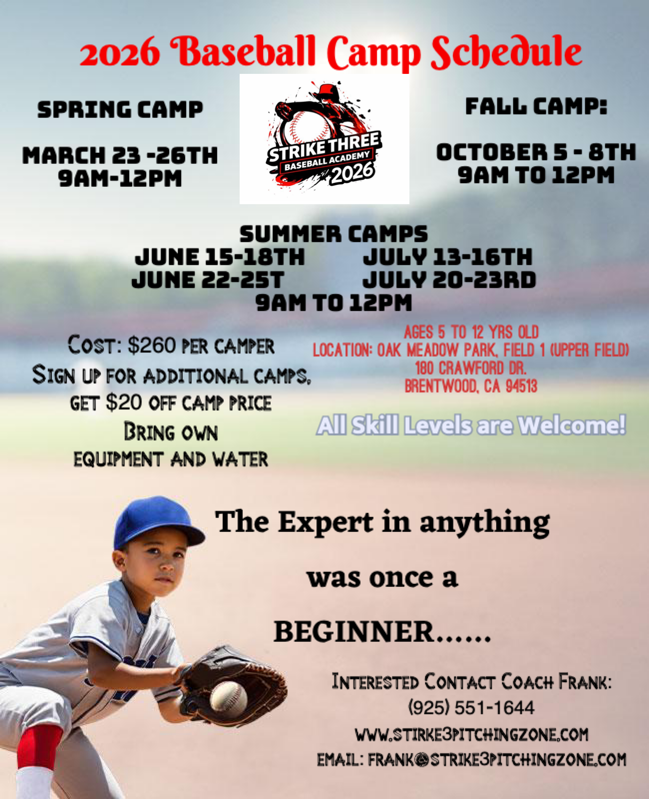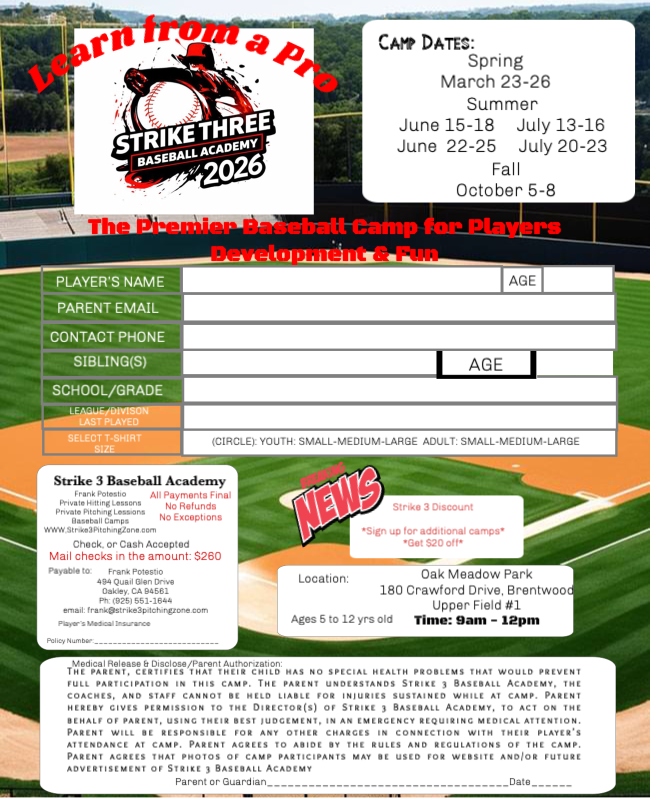 Register Now To Hold Your Spot For "Strike 3" Fall Baseball Camps